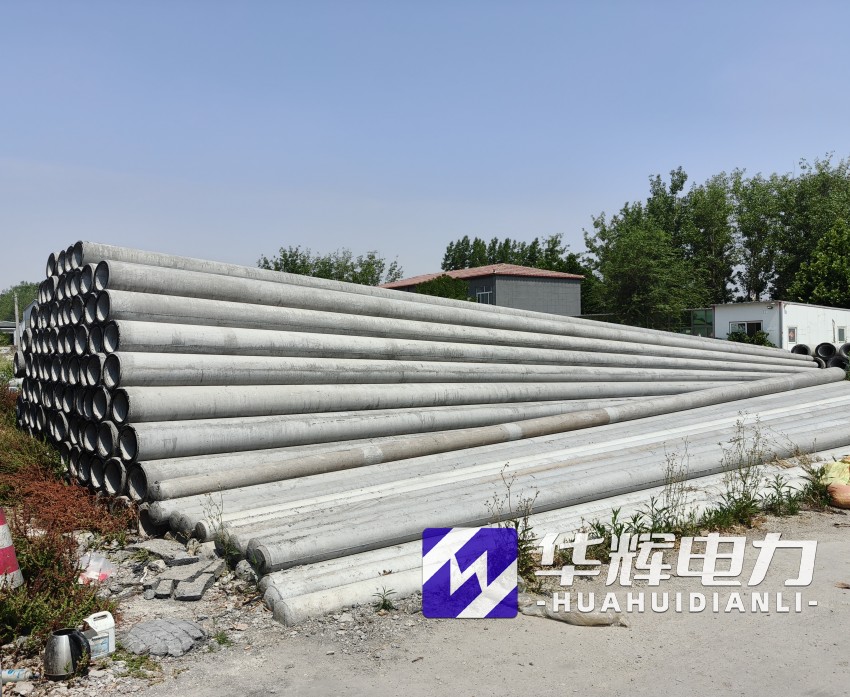 8米博厚镇水泥电线杆通常采用钢筋混凝土离心成型工艺,杆体呈锥形结构,梢径150mm-190mm,根径230mm-270mm,壁厚40mm-50mm。根据标准GB/T4623-2014,产品混凝土强度等级不低于C40,主筋采用HRB400级钢筋,配筋量根据抗裂弯矩要求设计,标准抗裂弯矩可达12-18kN·m,破坏弯矩不小于24kN·m。杆体重量约0.5-0.8吨,运输安装便捷,适合人工或小型机械施工。